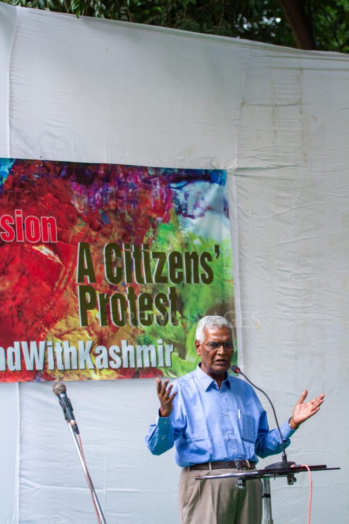 D Raja joins Citizens' protest at Jantar Mantar, New Delhi in October 2019 against the “75 days of lockdown in Kashmir” after the amendment to Article 370 and 35A.