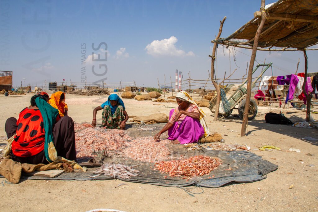 Women processing the fish catch at Tata Mundra affected village