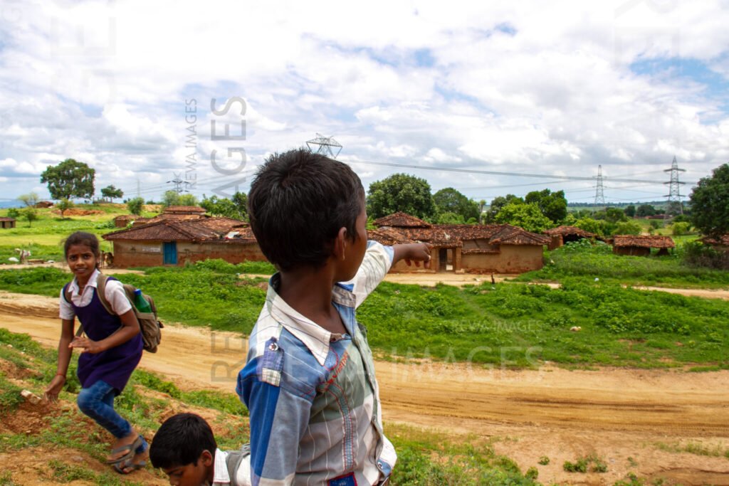 Children pointing to their land going for Sasan Coal project in Singrauli