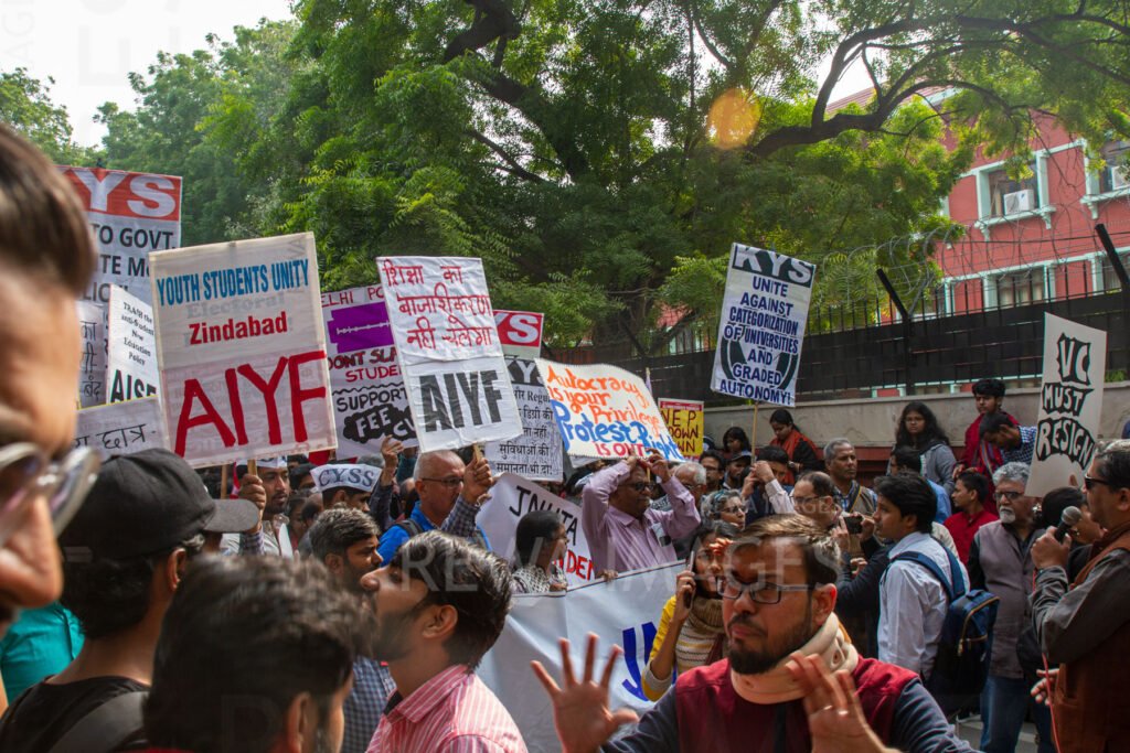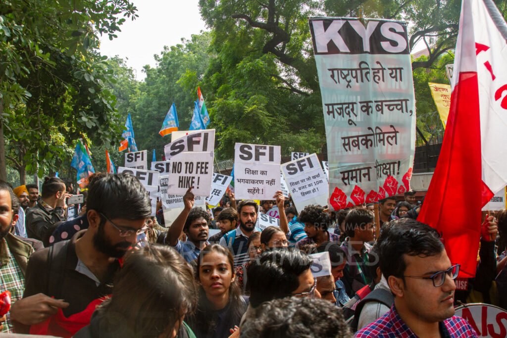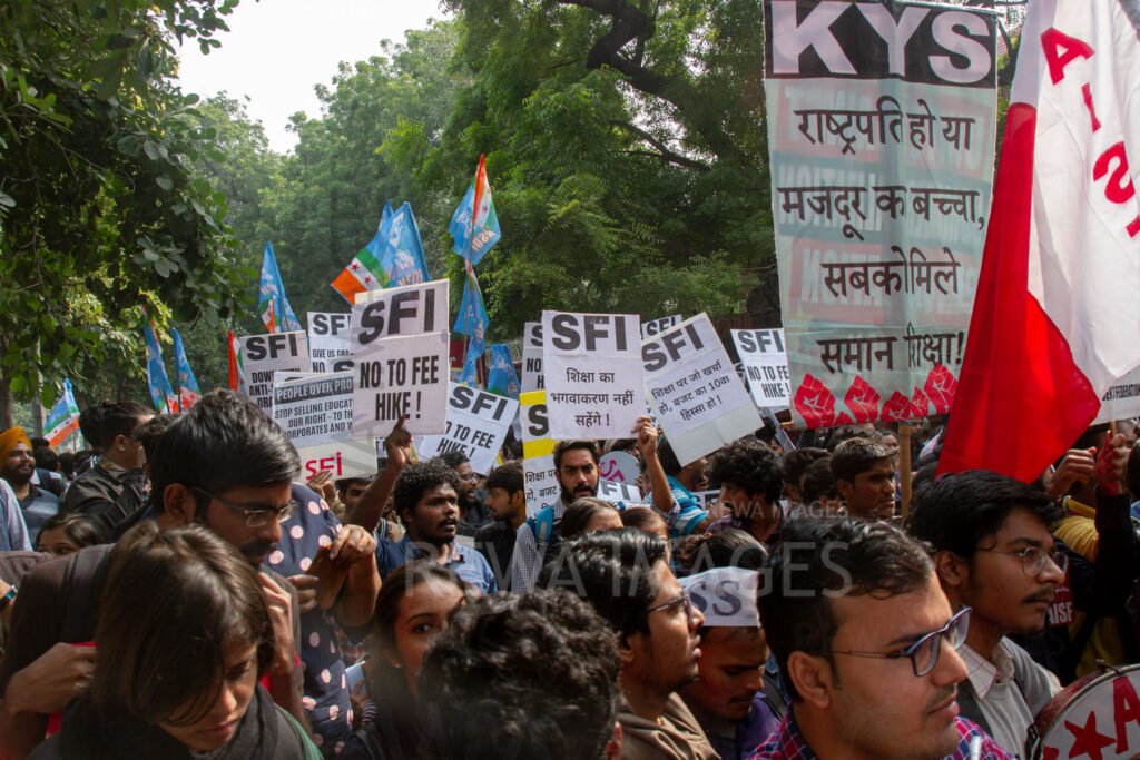 Students from Jawaharlal Nehru University & other Colleges protest in New Delhi, India, 23 November 2019 against fee hike and New Education Policy