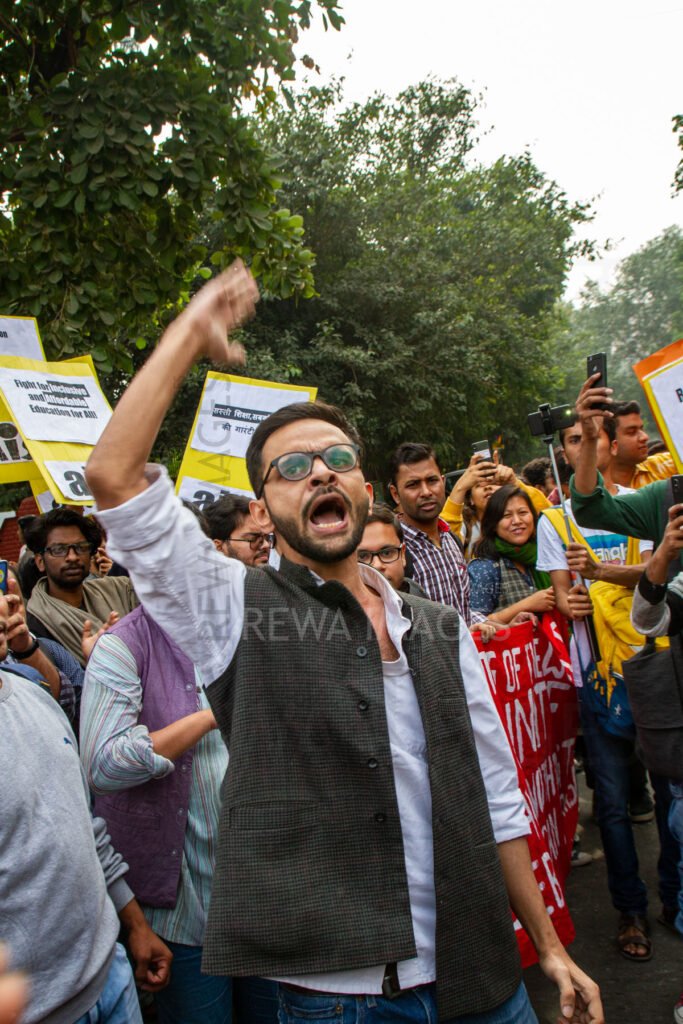 Umar Khalid joining Students from Jawaharlal Nehru University & other Colleges protest in New Delhi, India, 23 November 2019 against fee hike and New Education Policy