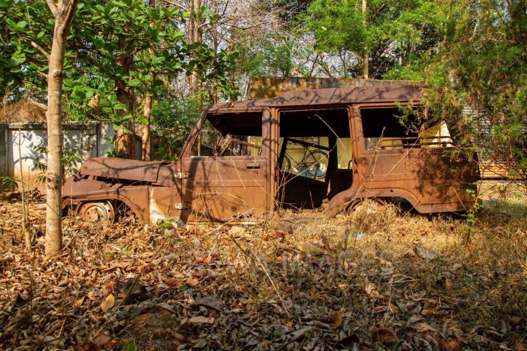 The burnt vehicle at the Pastoral House