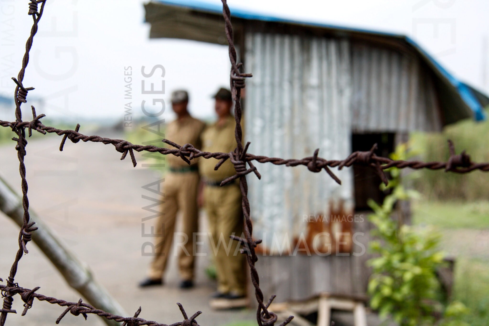 Security forces and barbed wires