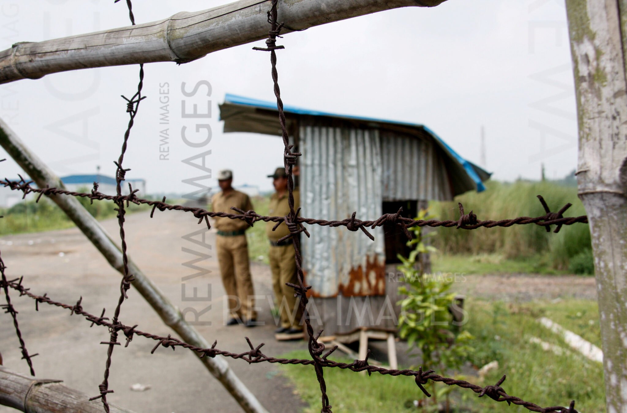 Security forces and barbed wires